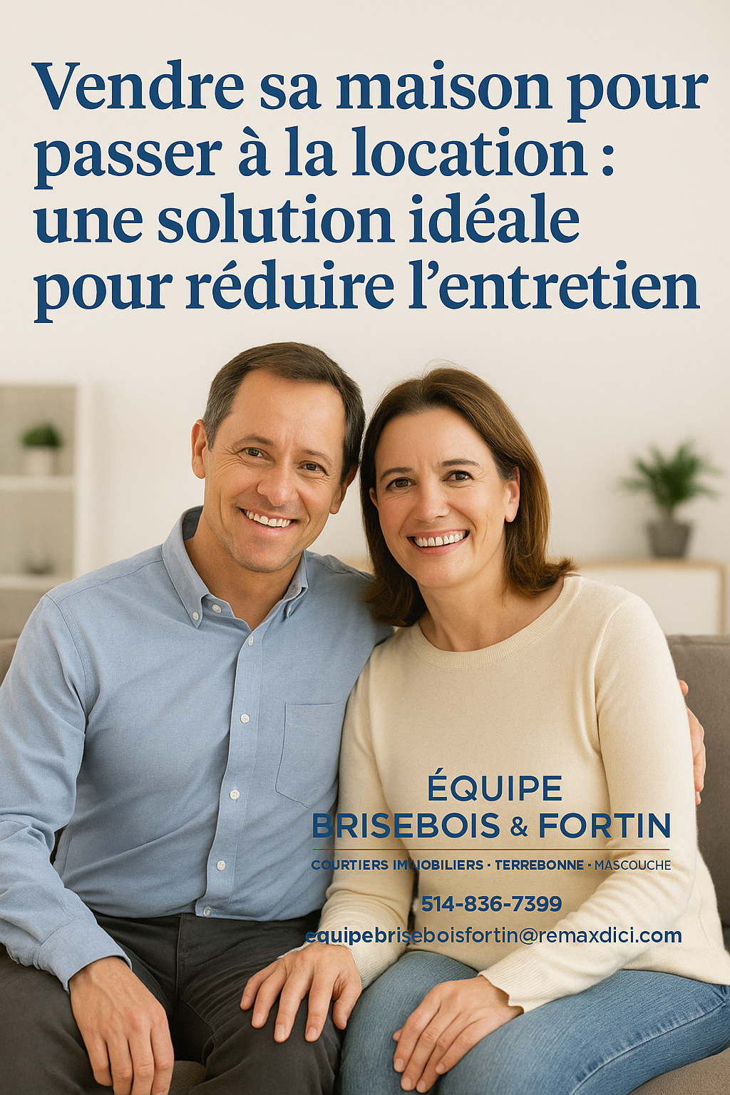 Chez Équipe Brisebois & Fortin, nous accompagnons régulièrement des vendeurs qui souhaitent tourner la page vers un mode de vie plus simple, sans entretien. Nous comprenons vos préoccupations et nous sommes là pour rendre cette transition rassurante et avantageuse.